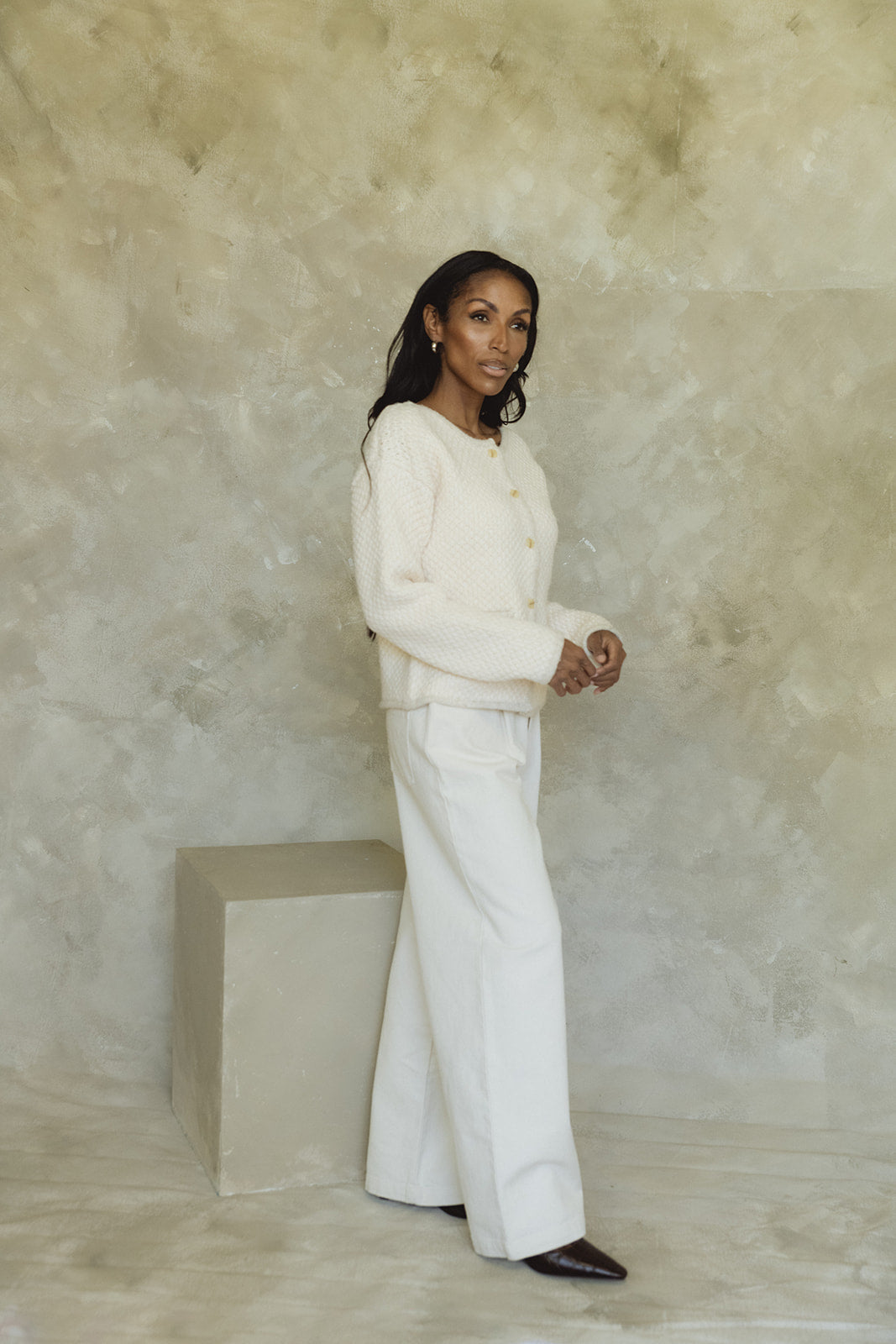 The Teddy Boucle Knit Jacket features a textured boucle knit in waffle pattern with a button front closure, front patch pockets, and contrast piping detail along the edges. The Teddy Jacket is a beautifully feminine piece that will hold a special place in your closet.